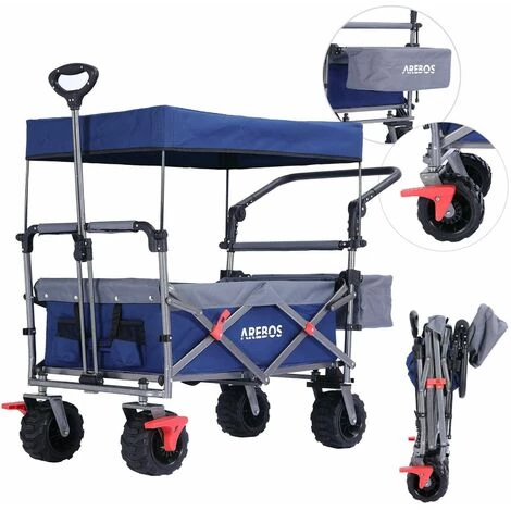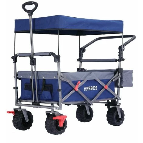 Le chariot utilitaire pliable est un véritable équipement polyvalent parmi les chariots utilitaires. Alors que la zone de charge, le sac de rangement XXL supplémentaire et plusieurs supports offrent beaucoup d’espace pour des voyages avec des enfants, pour les fêtes ou les autres activités de loisirs, le chariot peut également être plié au besoin. De plus, l’auvent offre une protection fiable contre le soleil et la pluie. La fonctionnalité épouse une conception intelligente et fonctionnelle.