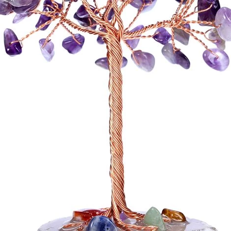Taille pour Arbre de cristal,Hauteur d’Arbre 9-9.5cm; Taille de base d’agate: 6-7cm * 4-5cm;Arbre de vie sur base d’agate, fil de cuivre de haute qualité reliant des feuilles en pierre naturelle faites à la main.