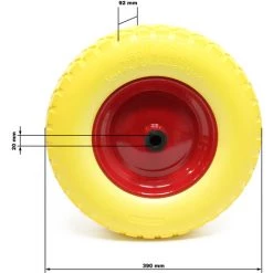 WILTEC Roue – Pneu De Brouette 4.8/ 4.00-8 Avec Axe Jaune Increvable Charge Jusqu’à 160 Kg