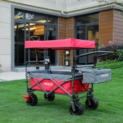 AREBOS Chariot De Jardin Pliable De Première Qualité Avec Toit Noir/Gris – Noir