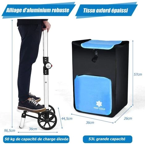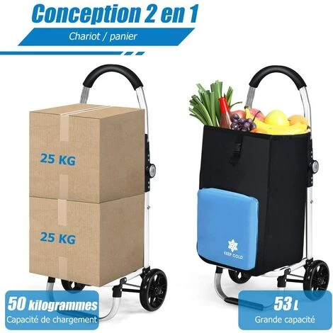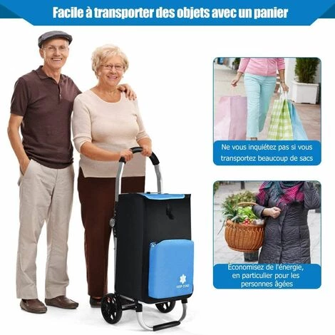 - 【Cadre robuste en alliage d’aluminium pour une longue durabilité :】Délicatement fabriqué avec un alliage d’aluminium sélectionné, le chariot de courses a une capacité de charge plus élevée allant jusqu’à 50kg. Une excellente technologie de soudage et une connexion solide permettent au chariot d’être très solide et durable, capable de fournir une durée de vie plus longue.