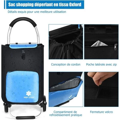 - 【Une conception facile à utiliser pour plus de commodité :】Le chariot de courses trouve un équilibre parfait entre confort et facilité d’utilisation, ce qui se reflète dans la poignée en mousse pour une prise en main en douceur et dans le design du cordon de serrage en cas de chute d’objets. Il est également équipé de doubles crochets qui permettent d’accrocher des sacs supplémentaires de manière beaucoup plus pratique.