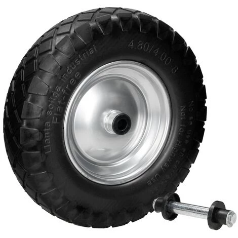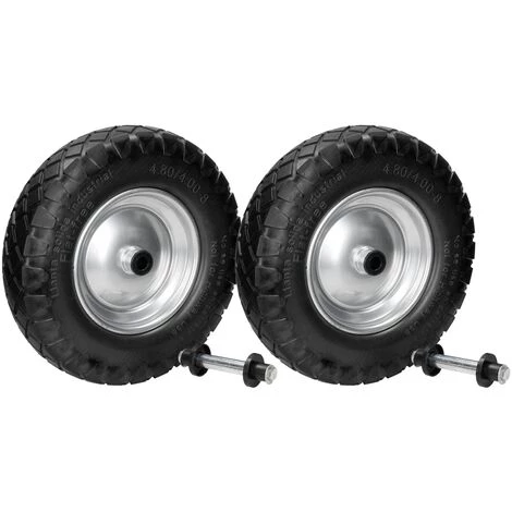 2 x Roue de brouette en caoutchouc plein PU 4.80 / 4.00-8 390 mm avec axe