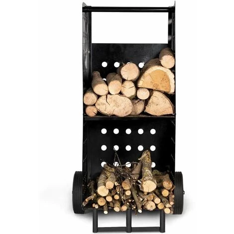 - Son côté fonctionnel, grâce à ses deux roues de 20 cm de diamètre et de 5 cm d’épaisseur, vous séduira autant pas sa maniabilité que par sa légèreté à vide. Le chariot porte bûches à roulettes sera un réel allié pour le transport de votre bois de chauffage et votre petit bois entre votre abri en extérieur et votre cheminée ou votre poêle.