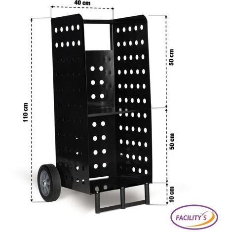- Pour un stockage optimisé et un rangement facilité de vos bûches, le chariot métallique dispose de deux niveaux de 50 cm chacun, séparés par une tablette métallique.