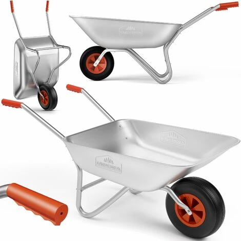 Dotée d´une capacité de 80 litres, cette brouette zinguée de Gardebruk® est idéale pour vos petits travaux de jardinage. Grâce à ses dimensions compactes et à sa légèreté, la brouette est facile à manier. Néanmoins, sa structure en tubes d’acier galavanisé garantit une conception stable et robuste. La roue pneumatique de Ø 32 cm est équipée d’une valve auto.