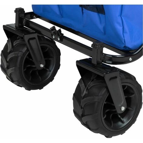 Présentation produit: Chariot de jardin pliable 80 kg tout-terrain outils jardinage bleu