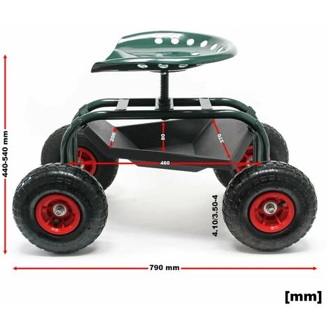 Présentation produit: Siège de jardin sur larges roues 150 kg max chariot coulissant porte-outil