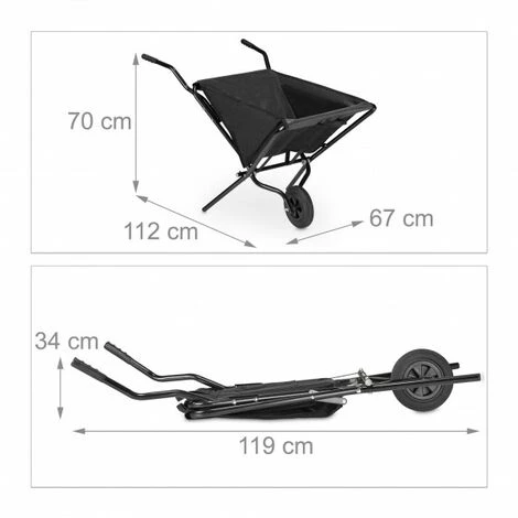 JARDIBRICODECO Brouette De Jardin Pliable En Noir