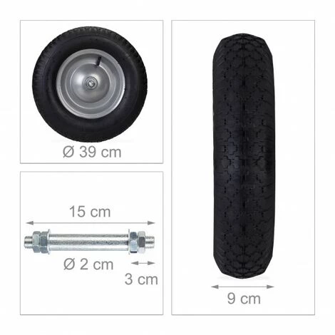 Roue complète_x000D_Avec axe_x000D_Charge jusqu’à 200 kg_x000D_Avec valve_x000D_Résistant aux coups