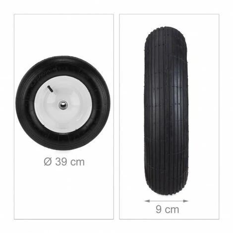 Roue de rechange pneumatique_x000D_Avec jante en acier blanche_x000D_Supporte jusqu’à 120 kg_x000D_Supporte jusqu’à 2 bar_x000D_Robuste et souple