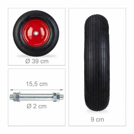 Roue pneumatique_x000D_Supporte jusqu’à 120 kg_x000D_Avec axe_x000D_Jante en acier rouge_x000D_Avec roulement à billes