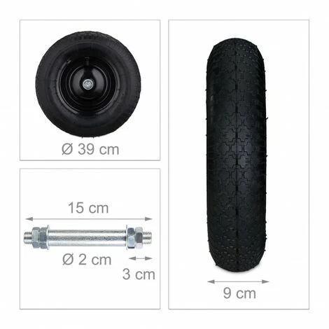 Avec essieu inclus_x000D_Jante en acier robuste_x000D_Résistant aux chocs_x000D_Charge maximale : env. 120 kg_x000D_Roues à air