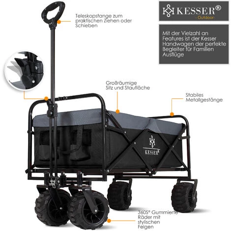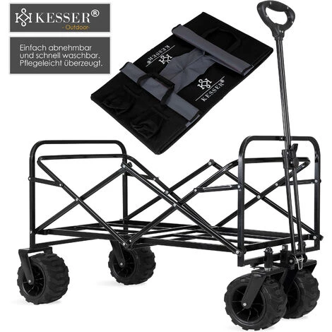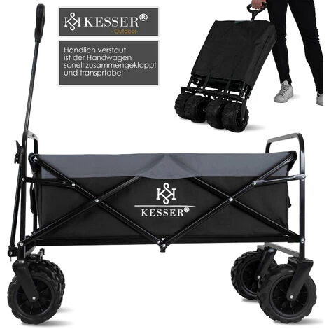 KESSER® Chariot à Roulettes Pliable à Pneus Larges | Chariot De Transport | Remorque De Transport | Charrette à Bras | 2 Poches En Mesh Fournies | Pliable | Pneus Pleins En Caoutchouc | Capacité De Charge Maximum De 80 Kg