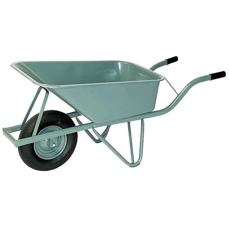 La brouette MATADOR est pourvue d’une benne rectangulaire en acier d’une capacité de 100 litres. Peinture époxy grise résistante aux intempéries, sans solvants.Sa manutention est confortable – surtout grâce à sa section tubulaire ovale. Celles-ci améliorent l’ergonomie et les poignées sont plus agréables dans la main.Un bac en plastique épais ainsi que des semelles assurent une durabilité plus longue. Le renfort en dessous de la benne et la construction ergonomique garantissent une parfaite stabilité.La brouette MATADOR à benne en acier roule sur un pneumatique dont la jante en acier se trouve sur 2 roulements à billes fermés des deux côtés.