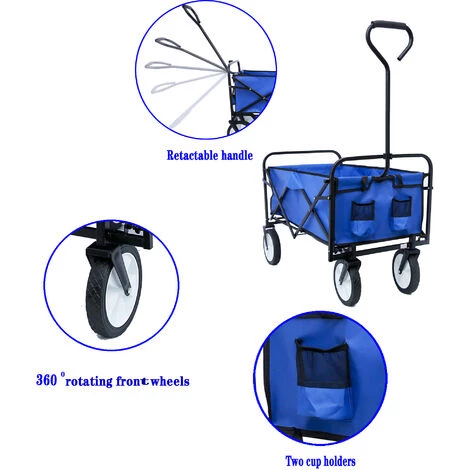 【Caractéristiques fonctionnelles】 Tous les chariots utilitaires sont livrés avec une poignée réglable pour un transport sans effort sur plusieurs surfaces (trottoir, herbe, etc.). Il est également livré avec 2 porte-gobelets en filet pour garder vos boissons en toute sécurité.