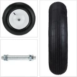 Relaxdays Roue De Brouette Caoutchouc 200 Kg, Roue De Rechange Axe, Jante Essieu 4.80 4.00-8, Noir