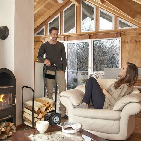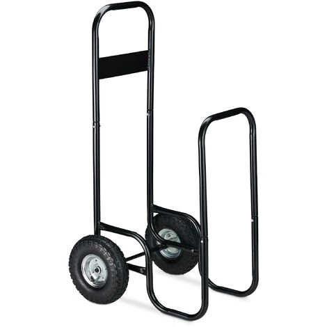 Relaxdays Chariot à Bois, Métal, Bâche De Protection, 2 Roues, 60 Kg, Transport & Stockage, Panier à Bûches, Noir