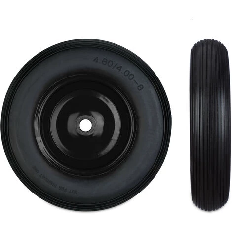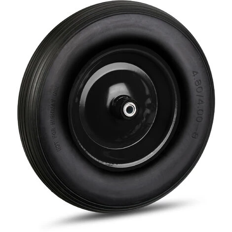 Si vous avez besoin d’une roue pour votre brouette de jardin, optez pour cette roue en caoutchouc increvable. La roue est résistante aux épines, clous et autres objets tranchants. Le roulement à aiguilles et la surface profilée offrent un transport confortable de votre brouette ou chariot. Cette roue convient pour les brouettes, chariots ou autres du commerce. La jante est faite en acier robuste. Elle est livrée avec 3 adaptateurs pour 4 différentes tailles d’axe.