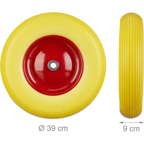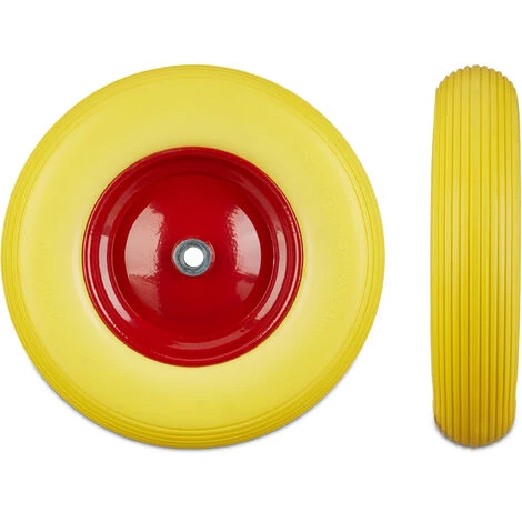 Si vous avez besoin d’une roue pour votre brouette de jardin, optez pour cette roue 4.80 4.00-8. Celle-ci ne contient pas d’air et est ainsi résistante aux épines, clous et autres objets tranchants. De plus cette roue est toujours prête à l’emploi. Le roulement à billes et la surface profilée offrent un transport confortable de votre brouette ou chariot. La roue est disponible en noir et rouge ou jaune et rouge. Choisissez celle qui vous convient le mieux. Cette roue convient pour les brouettes, chariots ou autres du commerce. La jante est faite en acier rouge.