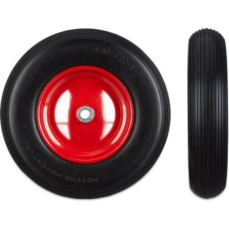 Si vous avez besoin d’une roue pour votre brouette de jardin, optez pour cette roue 4.80 4.00-8. Celle-ci ne contient pas d’air et est ainsi résistante aux épines, clous et autres objets tranchants. De plus cette roue est toujours prête à l’emploi. Le roulement à billes et la surface profilée offrent un transport confortable de votre brouette ou chariot. La roue est disponible en noir et rouge ou jaune et rouge. Choisissez celle qui vous convient le mieux. Cette roue convient pour les brouettes, chariots ou autres du commerce. La jante est faite en acier rouge.