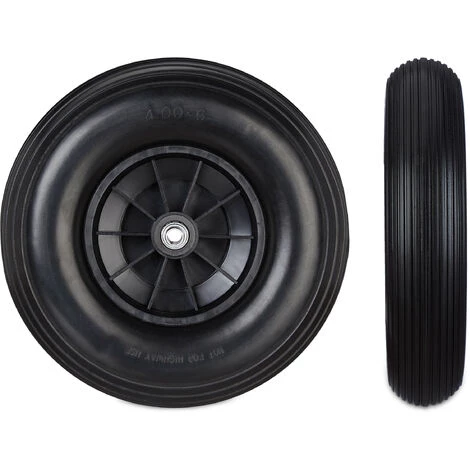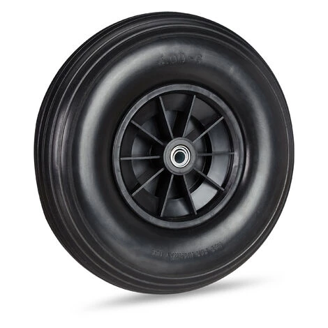 Si vous avez besoin d’une roue pour votre brouette de jardin, optez pour cette roue en caoutchouc increvable. La roue est résistante aux épines, clous et autres objets tranchants. Le roulement à aiguilles et la surface profilée offrent un transport confortable de votre brouette ou chariot. Cette roue convient pour les brouettes, chariots ou autres du commerce. La jante est faite en plastique robuste. Celle-ci est livrée avec 3 adapteurs pour 4 tailles différentes d’axes.