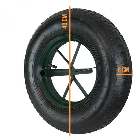 Le diamètre de la roue est de Ø 40 cm, la largeur de la roue est de 8 cm.