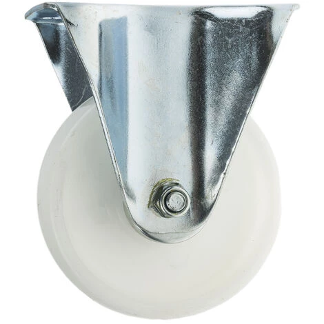 Roue en polypropylène, charge légère. Une gamme de haute qualité de roulettes de marque RS. Equipées de roues en polypropylène blanc avec un moyeu à roulement simple, ces roulettes ont une bonne capacité de charge et ne marquent pas les sols durs tels que le ciment ou le carrelage. Faciles à manœuvrer et résistantes. Résistant aux impacts Moyeu à roulement simple Capacité de charge de 50 à 250 kg Diamètre de roue de 50 à 200 mm Variantes à plaque supérieure ou trou de passage en acier pressé Roue en polypropylène blanc