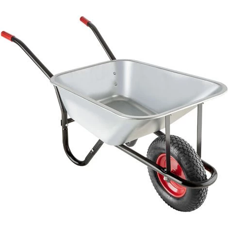 La brouette polyvalente de tectake est le compagnon idéal pour les travaux de bricolage, dans le jardin, dans les écuries, sur le chantier grâce à sa capacité de charge élevée. La construction légère mais robuste en acier avec un cadre renforcé et un bac galvanisé est parfaitement adaptée au transport de plantes, de terre, d’engrais, de débris et bien d’autres choses encore. Grâce à sa grande et large roue pneumatique avec bande de roulement à crampons, le chariot de jardin sera votre spécialiste tout-terrain. Grâce au revêtement plastique antidérapant des montants, vous avez toujours tout sous contrôle, même lors de voyages difficiles.