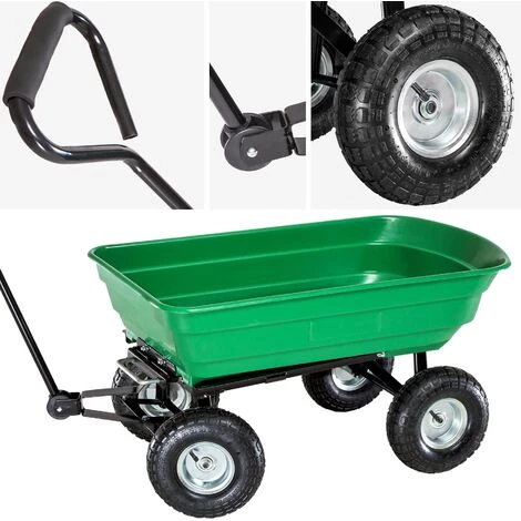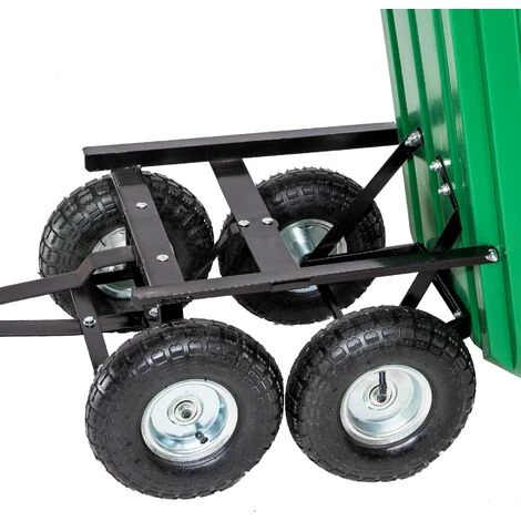 Chariot de Jardin Inclinable avec Benne Basculante 110 cm x 50 cm x 52 cm – Charge maximum 300 Kg Vert TECTAKE. Pratique, ce chariot est la meilleure aide pour vos travaux de jardinage et travaux usuels de transport. Il s’agit d’un outil de transport très polyvalent, qui sert au transport, de bois, de terre, de feuilles et d’équipements de jardinage par exemple. Grâce à un espace de chargement entièrement clos, on peut transporter aussi des matériaux en vrac tel que du sable fin, par exemple. Avec sa plateforme basculante en plastique, vous pouvez facilement vider la charge à l’endroit désiré. Le chariot de transport peut être dirigé très facilement. Les roues en caoutchouc souples permettent un déplacement confortable par monts et par vaux.