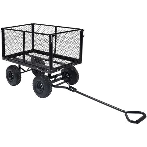 Fabriqué en acier robuste, ce chariot de jardin est extrêmement stable et durable. Avec une capacité de charge maximale de 350 kg, le diable peut facilement transporter des fleurs, des feuilles, des bûches et d’autres objets. Les panneaux latéraux peuvent être ouverts avec des attaches à dégagement rapide pour un chargement et un déchargement faciles. De plus, les grandes roues pneumatiques robustes vous permettent de tirer sans effort le chariot sur des surfaces accidentées. La poignée rembourrée assure également une prise ferme.