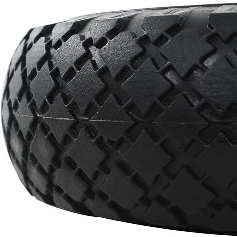 Les pneus solides sont fabriqués en élastomère PU résistant à l’abrasion et présentent une conception de bande de roulement spéciale qui offre une adhérence accrue à grande vitesse. Les jantes sont en plastique robuste. Les roues de diable de rechange ont une taille universelle et peuvent être facilement installées sur vos diables, chariots, etc.