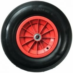 Informations techniques: Roue gonflable avec axe déporté Dimensions: 6 » Diamètre: 160 mm Largeur: 50 mm Alésage: 20 mm Moyeu: 54 mm Roulements à billes Jante métal démontable Coloris de la jante: Acier