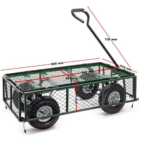 Ce chariot de transport est une aide indispensable pour le jardinage; les feuilles, les écorces, du sol, des fruits, du bois ou bien encore des dispositifs peuvent être transportés de manière facile.